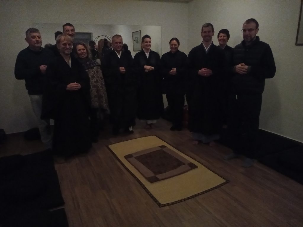Jaki był ten sesshin? Bliższy tzw. „codziennego życia”: dojazdy samochodem z Bielan, rozmowy, wizyta u lekarza, pogrzeb ojca kolegi, mecz w tv. Nawiązując do mowy Sokuze: „zawsze coś”. W mieście jest więcej tych „coś”, łatwiej się wyrwać coś załatwić. Z drugiej strony zendo na Wilczej sprzyja: praktyce, odpoczynkowi, pracy, czytaniu, wspólnym posiłkom. Pomimo lokalizacji w centrum jest raczej cicho, nieregularne odgłosy wydawane przez sąsiadów z góry rzadko przyciągają uwagę. W czasie nocnego siedzenia nic z zewnątrz nie przeszkadza, nie rozprasza. Słychać tylko oddechy i ruchy współsiedących. Słychać było też mowy Ujiego i Kazika-Sokuze. Kazik-Sokuze nie tracił czasu na zbędne słowa i rozległe objaśnienia. Wielość wątków, rzucanych szybko, jeden po drugim, z erudycją, swobodą, z doświadczenia. Zdań często niedokończonych, zawieszonych „na zaimkach”, otwierających nowe, kolejne rozumienia. Przy czym precyzyjnych i opisujących realność praktyki, rozczarowanie ale i od-czarowanie, to co istotne, hm… dla mnie. Dziękuję.